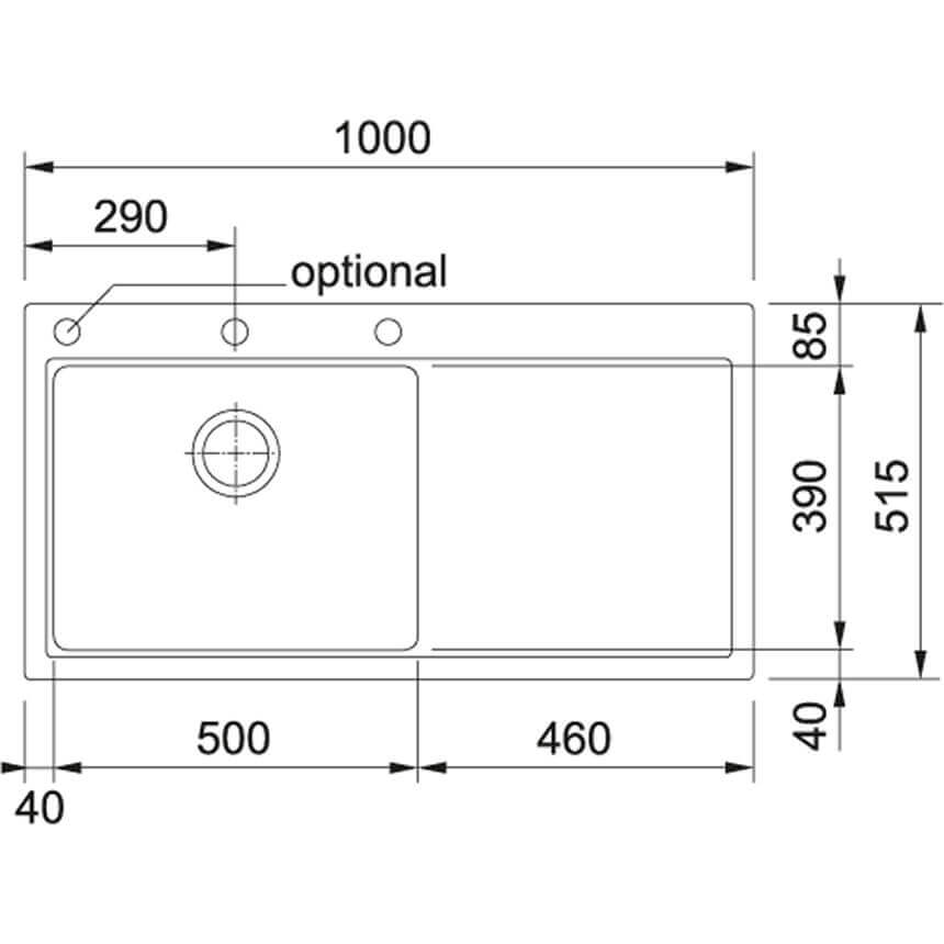 - Spülenmaß: 1000x515 mm